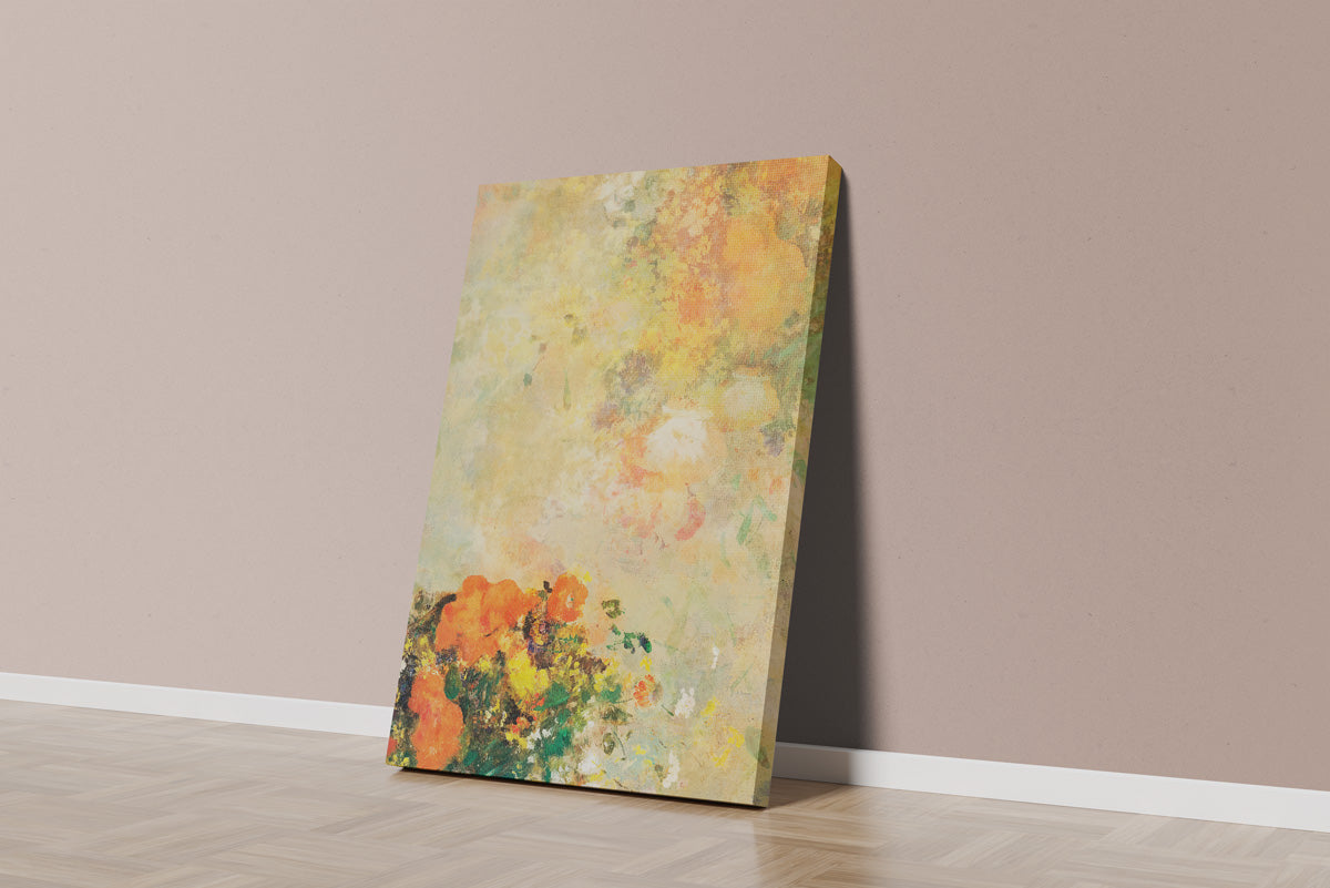 A vibrant blend of warm yellows, oranges, and greens, this abstract floral canvas evokes the feeling of a sunlit garden in full bloom. Perfect for brightening up living rooms, bedrooms, or creative spaces, it brings a touch of warmth and elegance to any wall.”